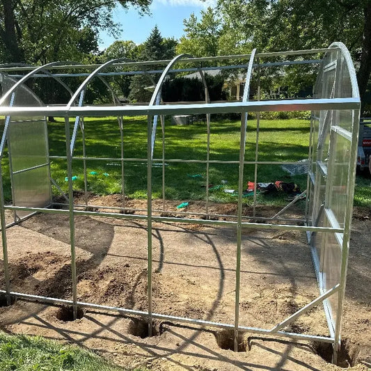 - Greenhouse frame made of square galvanized steel tubes.